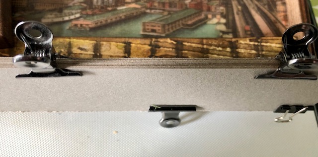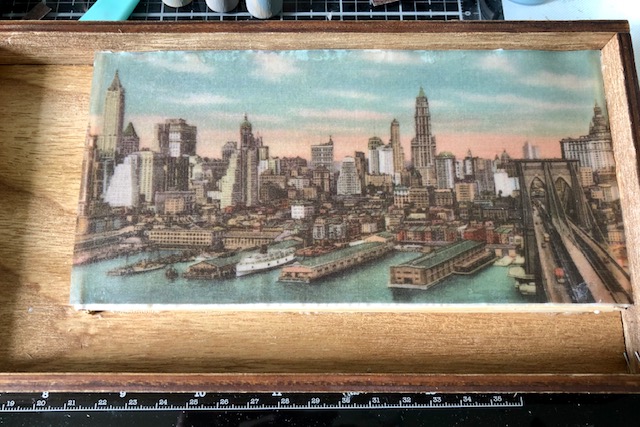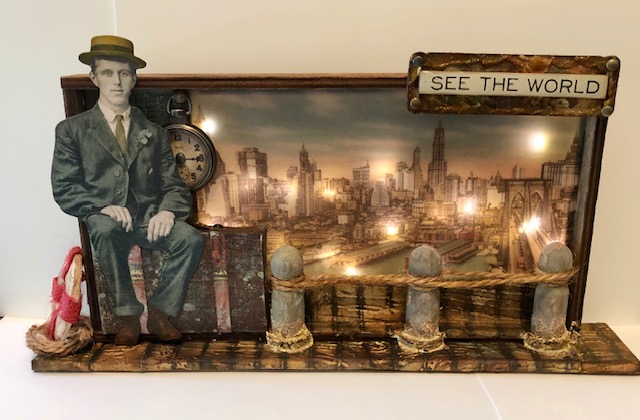 Hello friends! I am excited to share my first blog post with you all and it is going to be a long one! This vignette piece all started with a Tim Holtz paper doll that reminded me of my late father. I knew I would have to use him in something. My father’s family were immigrants from Sicily, fishermen and restaurant owners, so I knew I would have to do something that looked like a dock. I’ve been playing with Tim’s vellum scenes and tiny lights and it all came together in my head. I hope you enjoy this step by step tutorial and don’t get discouraged by the number of steps. Although this project is time consuming it is not difficult.