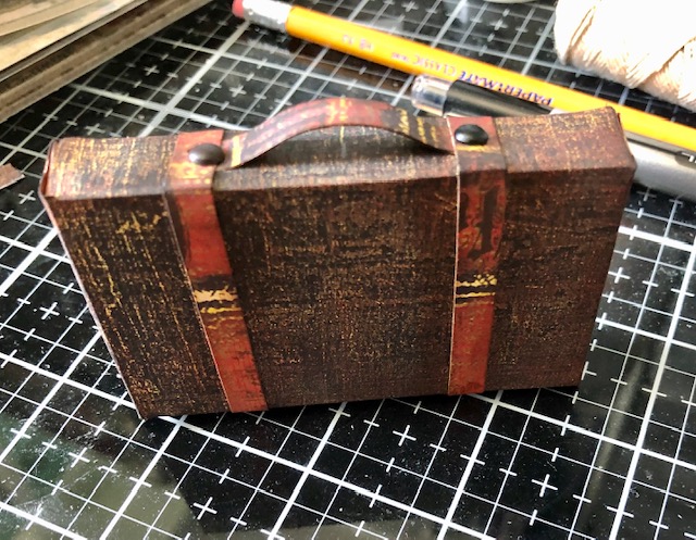 - Distress your suitcase if you like and glue it to the left bottom corner of the tray.