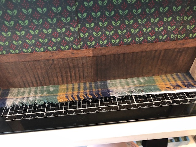 For the “rug” I simply cut a strip of wool fabric I had leftover from another project and glued it to the “floor”
