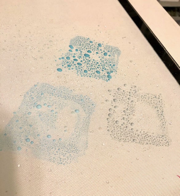 2. Ink up the watercolor base paper by rubbing the three blue oxide colors on a mat and spritzing with water. Dab your card stock into the inks, drying between layers until you get a background that pleases you.