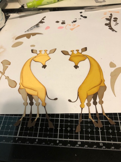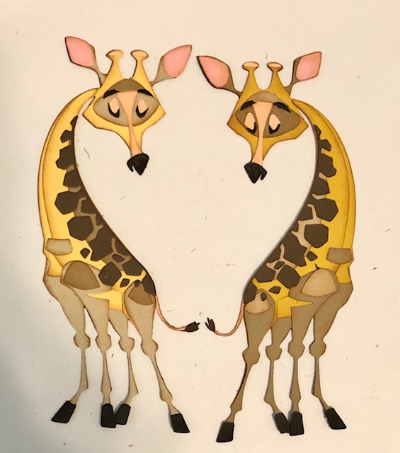 That’s it! An easier one this week, with most of the time spent assembling the giraffes. Remember to be patient, have tweezers, a pick up tool and clear drying glue handy and have fun (I like the Dries Clear glue by Art Glitter. It has a nice fine tip and it doesn’t dry shiny like some clear glues) . The colorize dies are marked on the back with colors and numbers to sort them easier. Also remember that Sizzix has assembly direction videos for their colorize dies which are very helpful. Have a great week! – Lisa