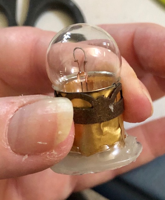 For the crystal ball, I used an old TH light bulb. I covered the metal section with gold washi tape. I put a blob of hot glue on my mat and stuck it in it to serve as a base.