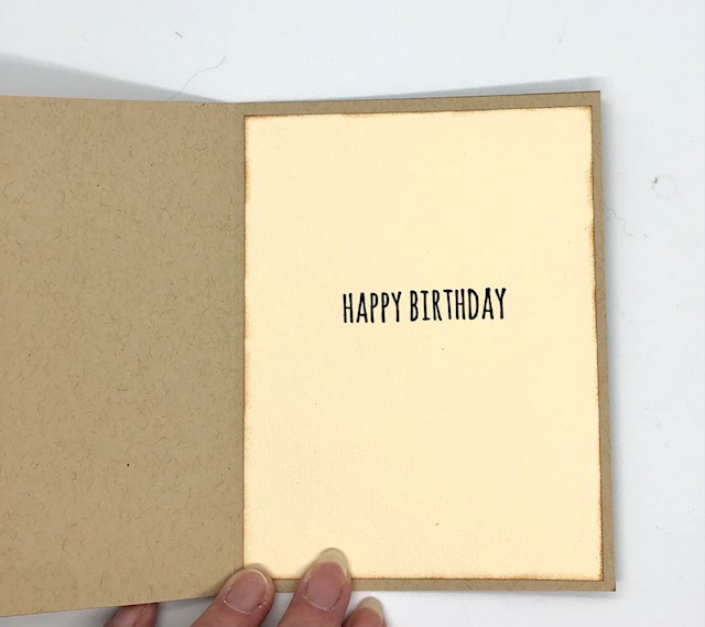 7. For the inside of the card, I used the Happy Birthday sentiment from the Crazy Talk stamp set on a piece of ivory cardstock and attached it to the inside of the card.