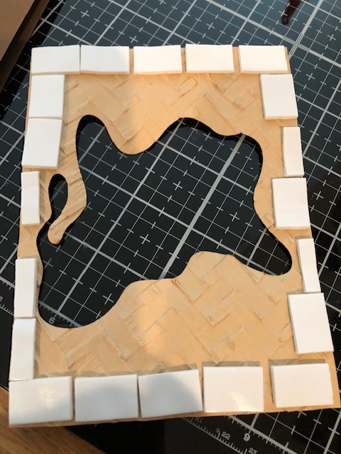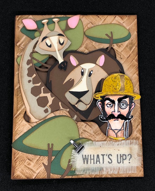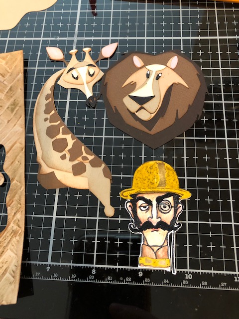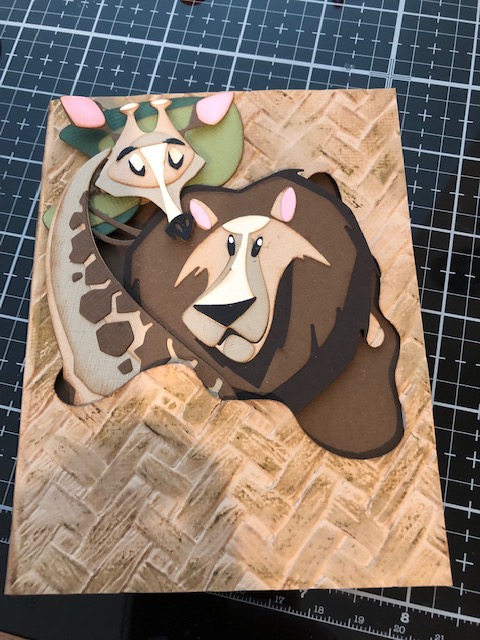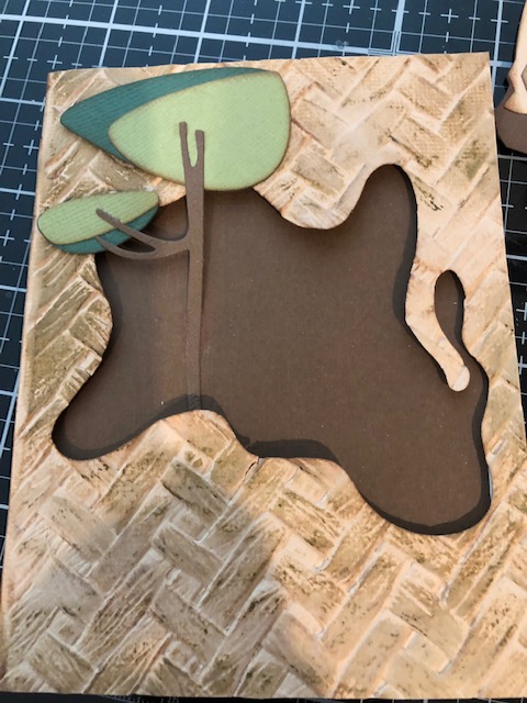 5. Assembly. I put foam tape just around the edges of the beige piece and attached it to a card base cut out of dark brown card stock. Keep the center clear so you can position your characters more easily.