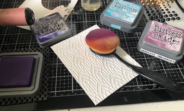 • Tim Holtz/Ranger Distress Oxides – Seedless Preserves, Broken China, Villianous Potion