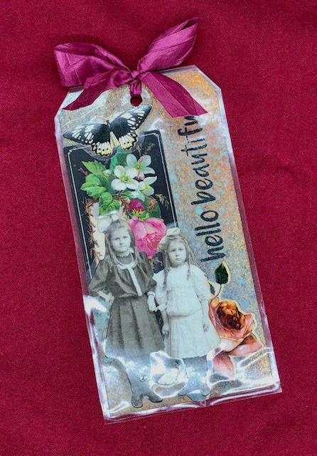 For my most recent swap, I decided to make each person a bookmark to start the year in addition to my swap. Each one was made in exactly the same way, using different ephemera and paper dolls. Once I had a plan, they came together very quickly. I hope you like them and perhaps get inspired to get crafting, even if it’s a small project. I’ve posted close ups of the bookmarks both prior to laminating them and after.