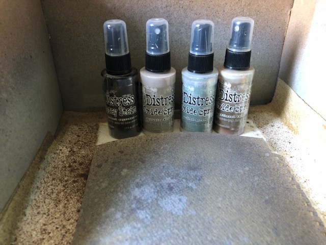 - Tim Holtz/Ranger distress oxides sprays- pumice stone, iced spruce, gathered twigs