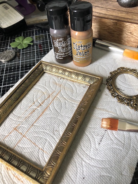 - Tim Holtz/Ranger Distress Paint- Ground espresso and tarnished brass